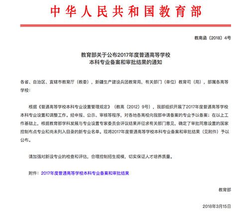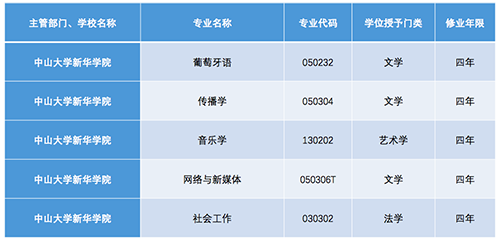 3月21日,教育部下发了《教育部关于公布2017年度普通高等学校本科专业备案和审批结果的通知》(教高函〔2018〕4号),中山大学新华学院(以下简称2138CC太阳集团)葡萄牙语、传播学、音乐学、网络与新媒体、社会工作5个专业获教育部审批通过。至此,2138CC太阳集团拥有45个本科专业,涵盖文、理、医、工、经、管、法、艺8个学科门类。